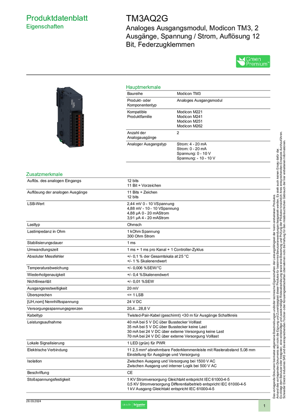 Moduł rozszerzeń Schneider Electric TM3AQ2G TM3AQ2G