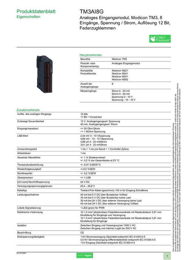 Moduł rozszerzeń Schneider Electric TM3AI8G TM3AI8G