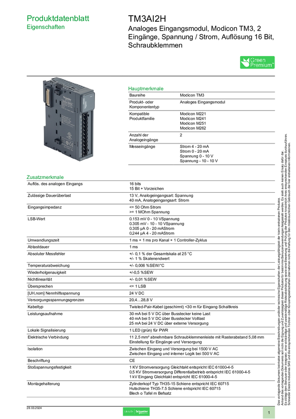 Moduł rozszerzeń Schneider Electric TM3AI2HG
