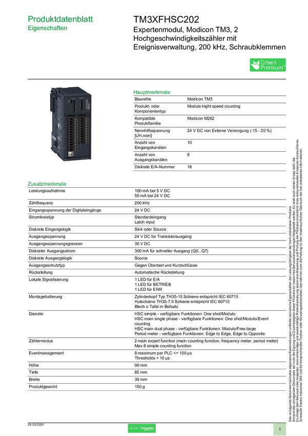 Moduł rozszerzeń Schneider Electric TM3XHSC202G