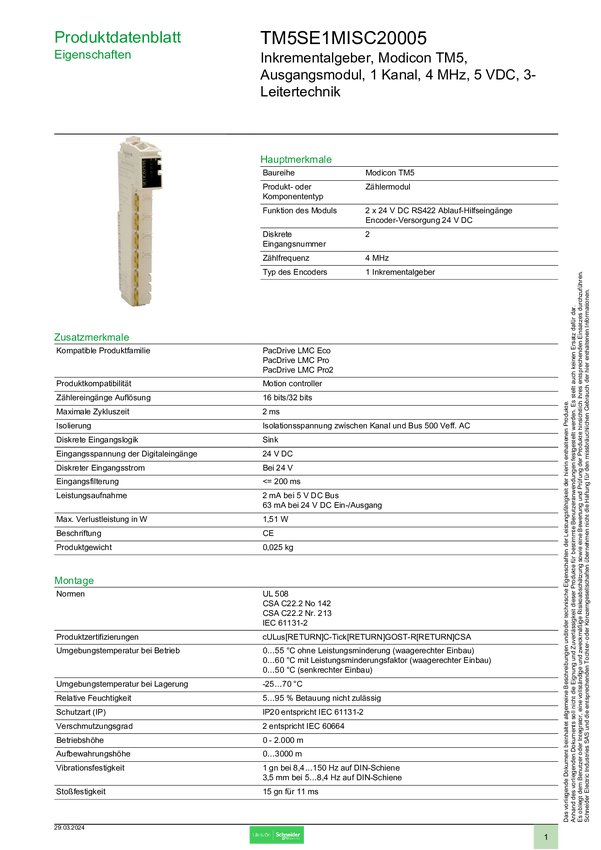 Moduł rozszerzeń Schneider Electric TM5SE1MISC20005 TM5SE1MISC20005