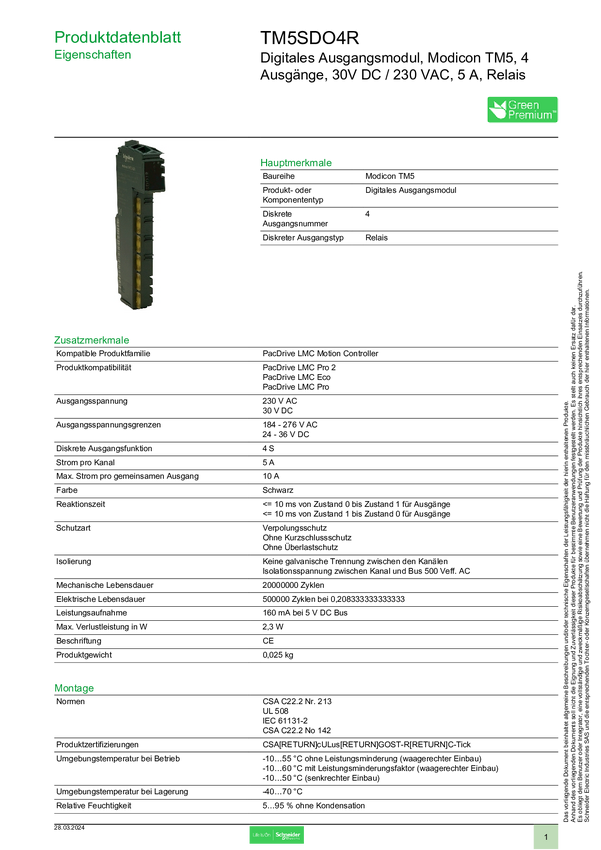 Moduł rozszerzeń Schneider Electric TM5SDO4R TM5SDO4R