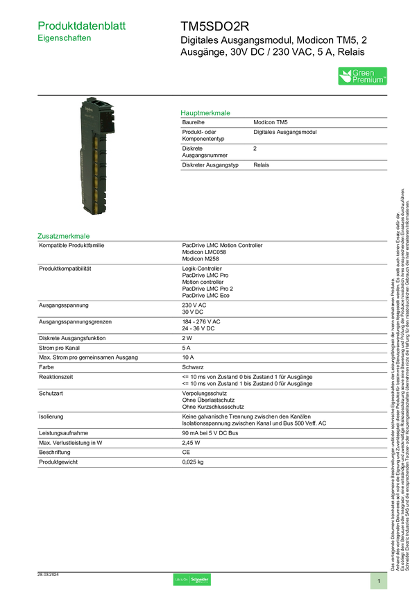 Moduł rozszerzeń Schneider Electric TM5SDO2R TM5SDO2R