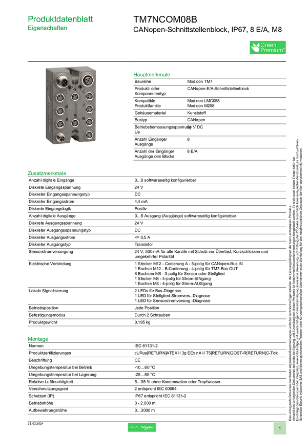 Moduł rozszerzeń Schneider Electric TM7NCOM08B