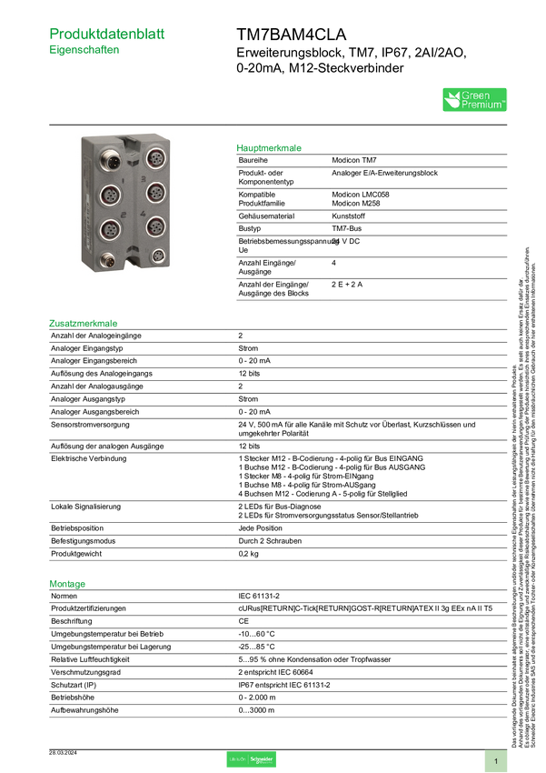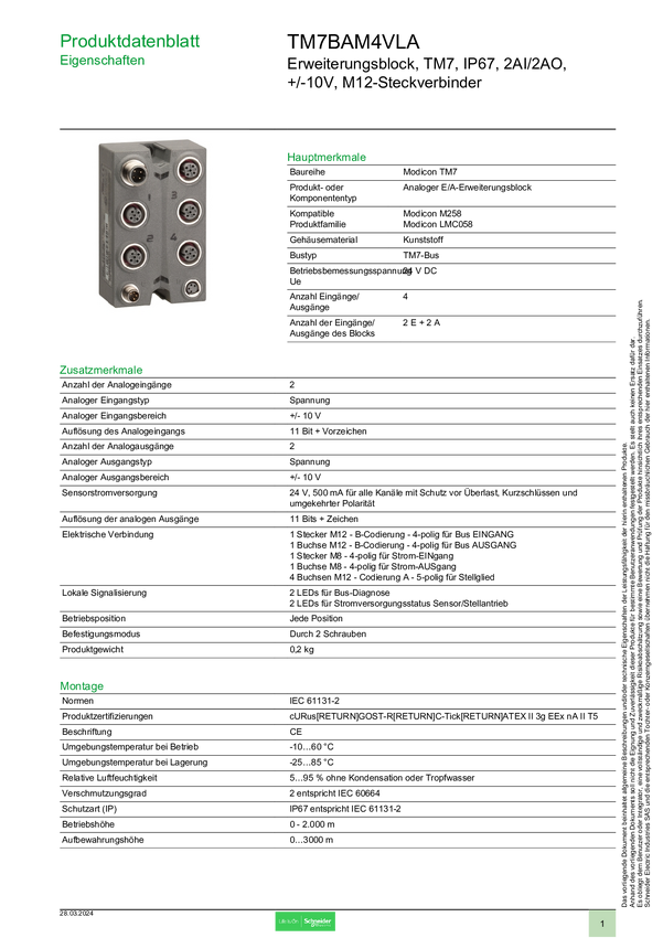 Moduł rozszerzeń Schneider Electric TM7BAO4VLA