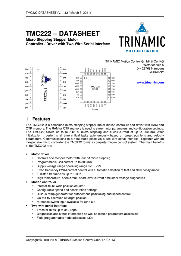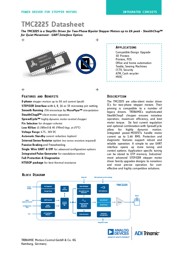 Silent stepper motor driver 5 to 36V, up to 1.4A with S/D and UART Interface, 256 µSteps, SpreadCycle and Stealthchop2