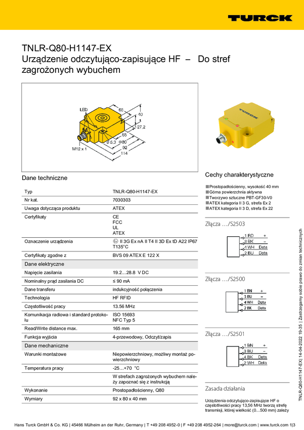 Turck TNLR-Q80-H1147-EX Głowica do odczytu i zapisu