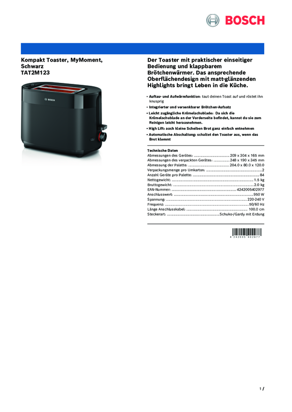 Toster Bosch Kompakt Toaster MyMoment, schwarz