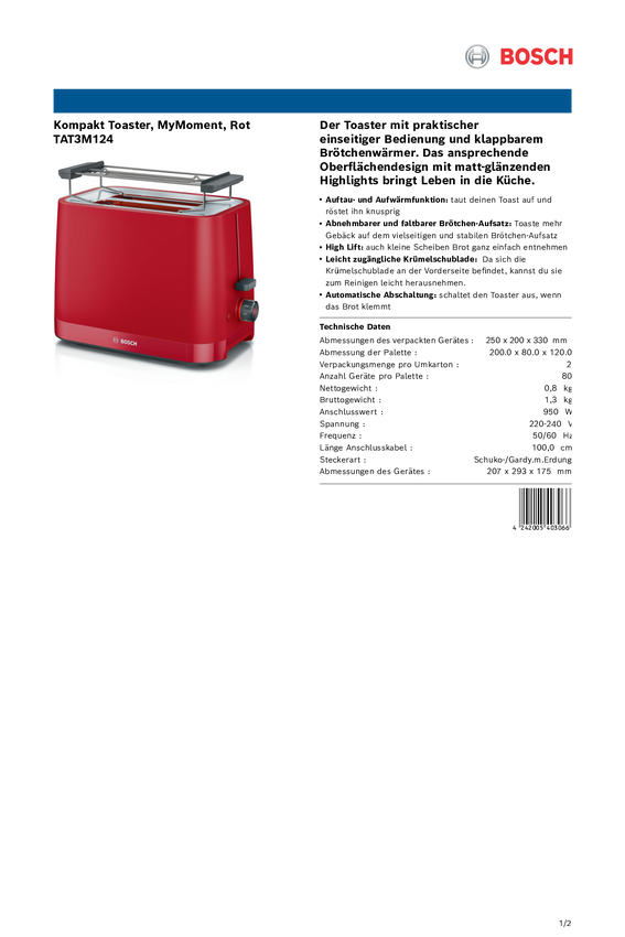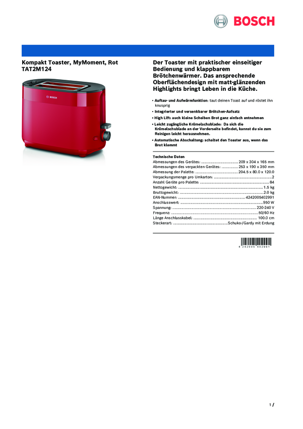 Toster Bosch Kompakt Toaster MyMoment, rot