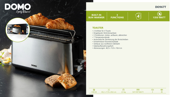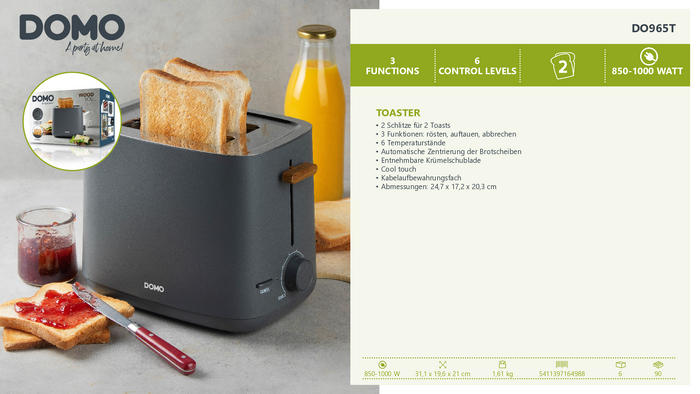Toster DOMO TOASTER 2 Schlitze für 4 Toasts