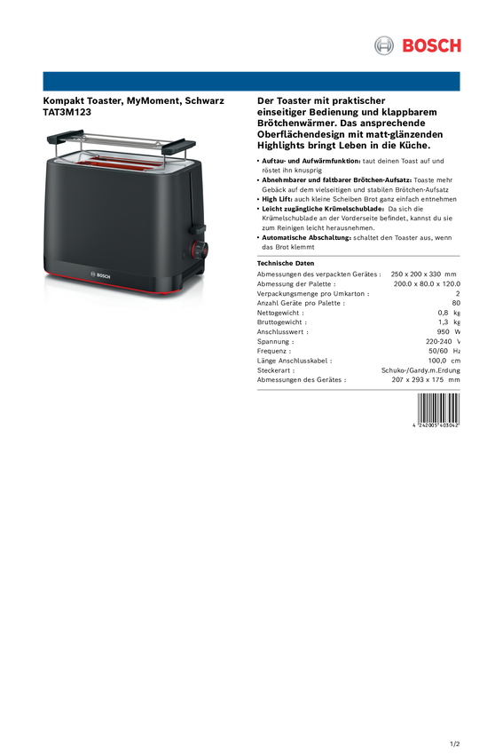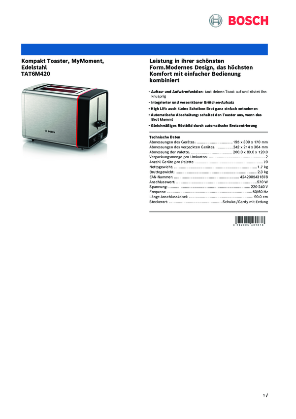 Bosch Kompakt Toaster MyMoment, Edelstahl Toster stali szlachetnej