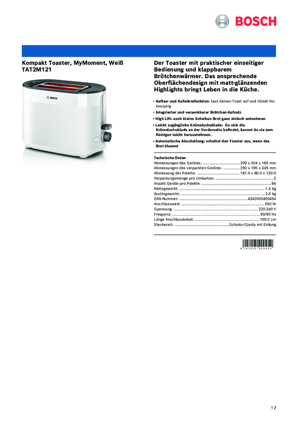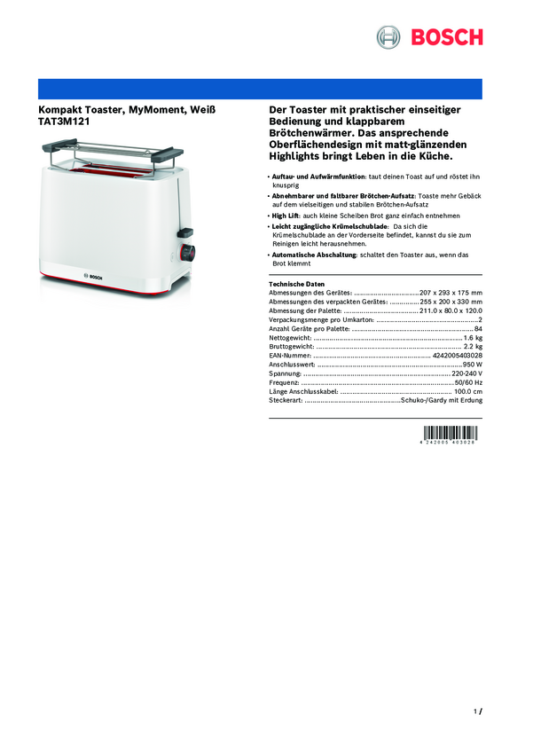 Toster Bosch Kompakt Toaster MyMoment, weiß