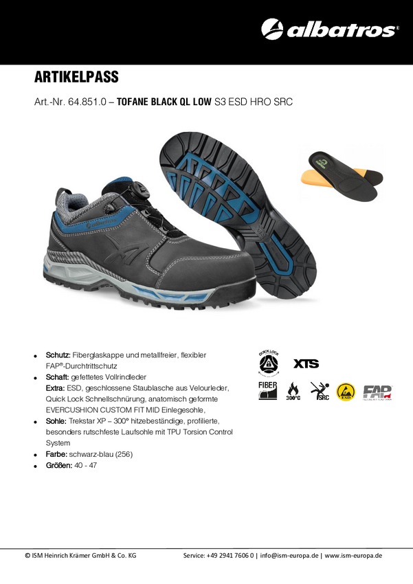 Albatros TOFANE BLACK QL LOW S3 ESD HRO SRC 648510256000047 Obuwie ochronne S3 Rozmiar buta (EU): 47 czarno-niebieski 1