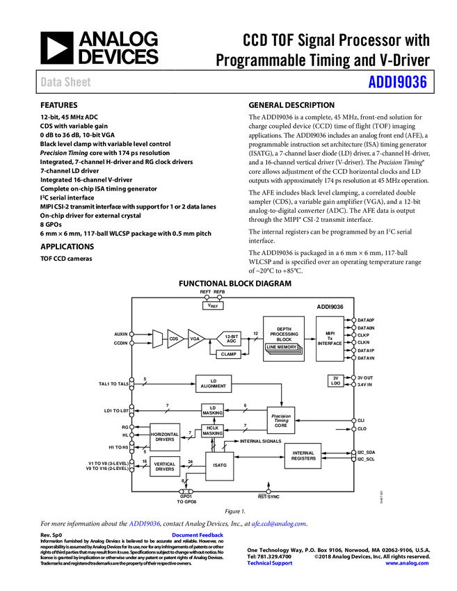 CCD TOF Signal Processor with Programmable Timing and V-Driver
