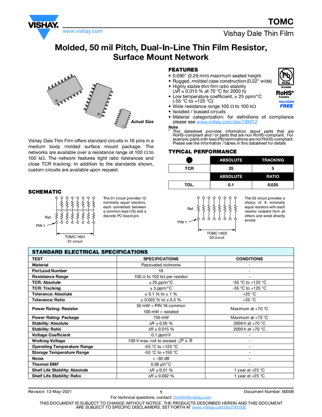 Molded, 50 mil Pitch, Dual-In-Line Thin Film Resistor, Surface Mount Network