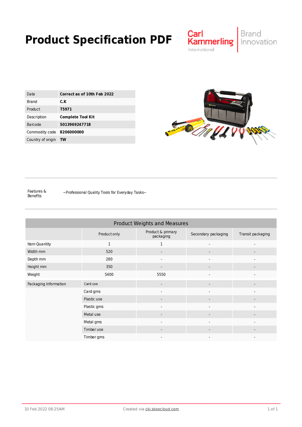 C.K T5971 Zestaw narzędzi dla rzemieślników w torbie 15 szt.