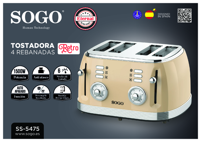 Toster na 4 kromki lampka kontrolna, funkcja tostera SOGO Human Technology