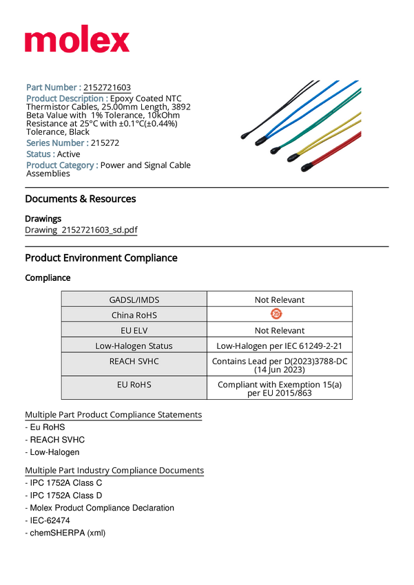 Molex 2152721603 NTC-Thermistor 1 szt. towar pakowany luzem
