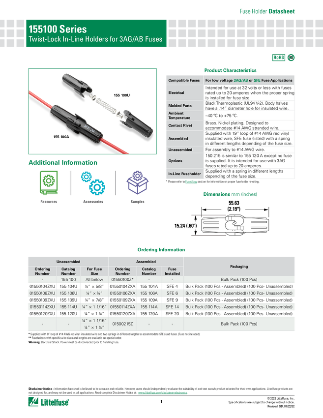Littelfuse 01550100LXN 01550100LXN Uchwyt bezpiecznika 1 szt. towar pakowany luzem