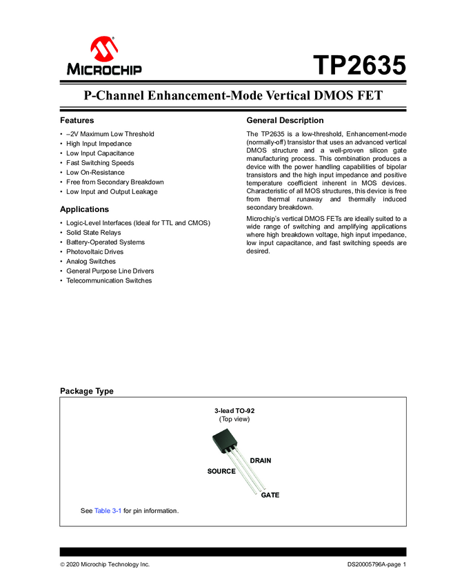 TP2635 Datasheet - P-Channel Enhancement-Mode Vertical DMOS FET (06/27/2014)