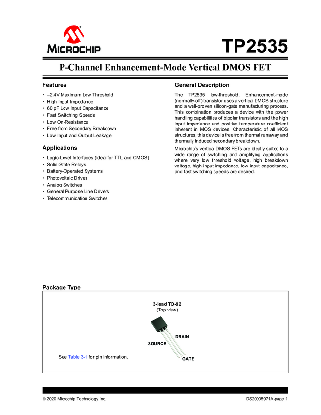 TP2535 Datasheet - P-Channel Enhancement-Mode Vertical DMOS FET (06/27/2014)