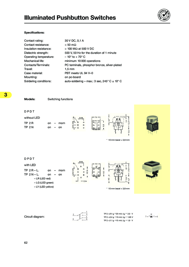 Switch Push Button OFF Mom SPST Round Plunger 20VAC 20VDC 0.4VA Momentary Contact PC Pins Thru-Hole
