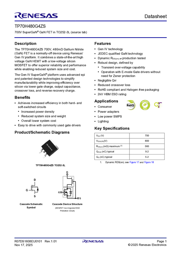 700V, 480mΩ, SuperGaN FET in DPAK TO-252