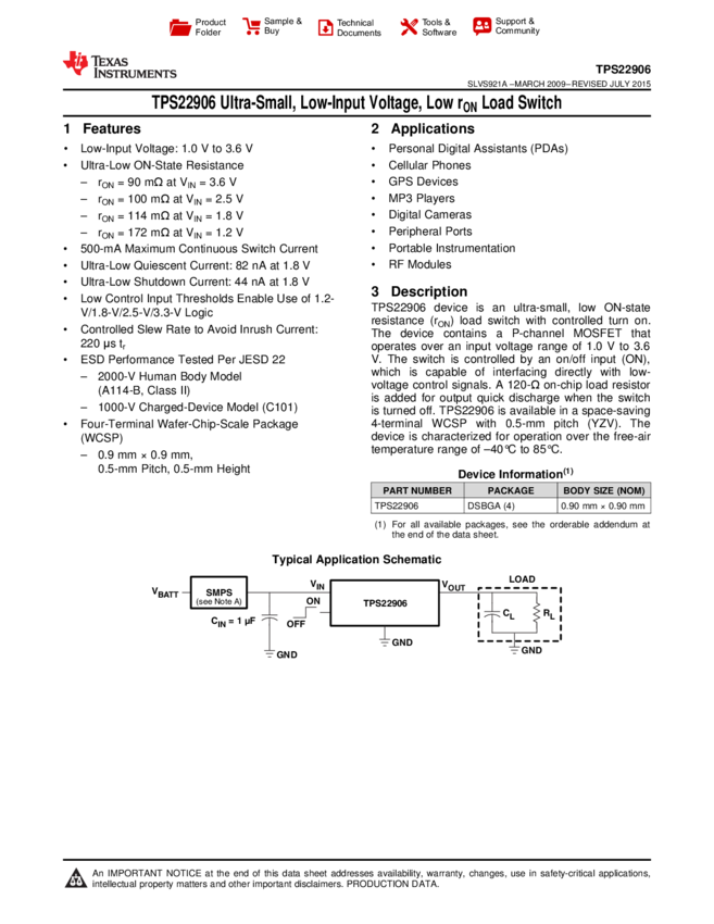 TPS22906YZVR