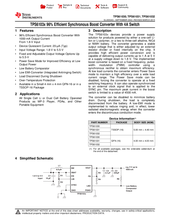 Conv DC-DC Single Step Up 1.8V to 5.5V 16-Pin VQFN EP T/R