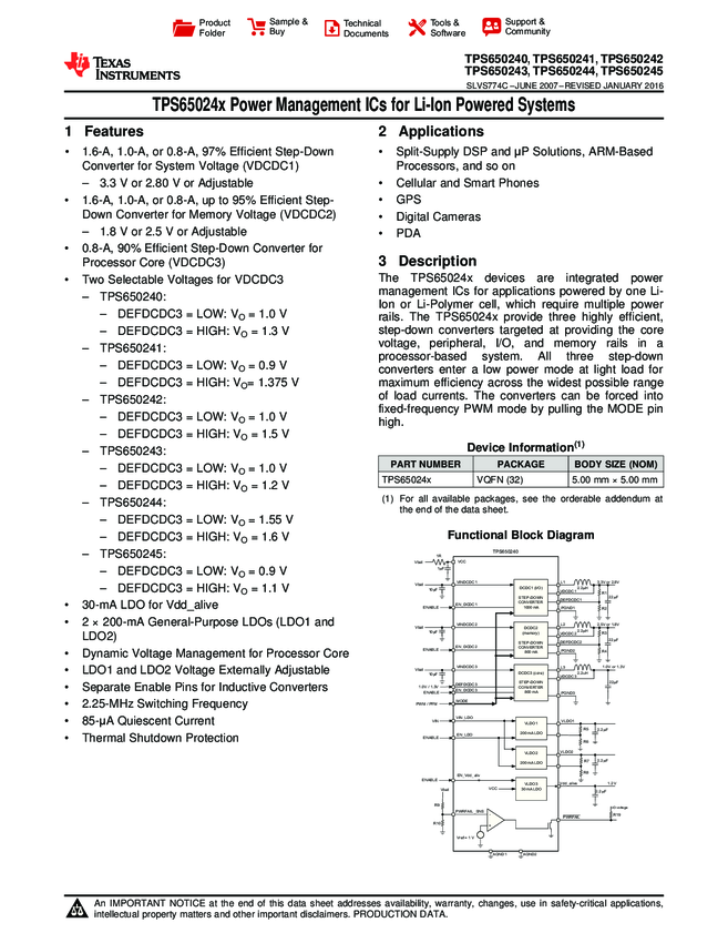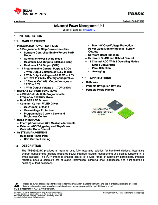 Power Management 120-Pin BGA MICROSTAR JUNIOR