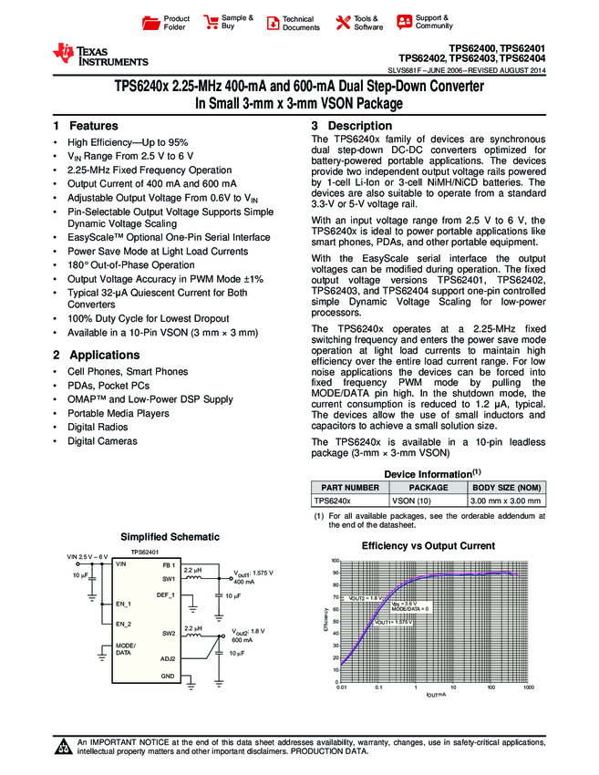 Conv DC-DC Dual Step Down 2.5V to 6V 10-Pin VSON EP T/R