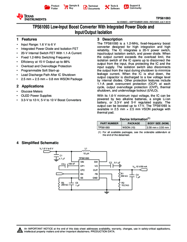 Conv DC-DC Single Step Up 1.6V to 6V 10-Pin WSON EP T/R