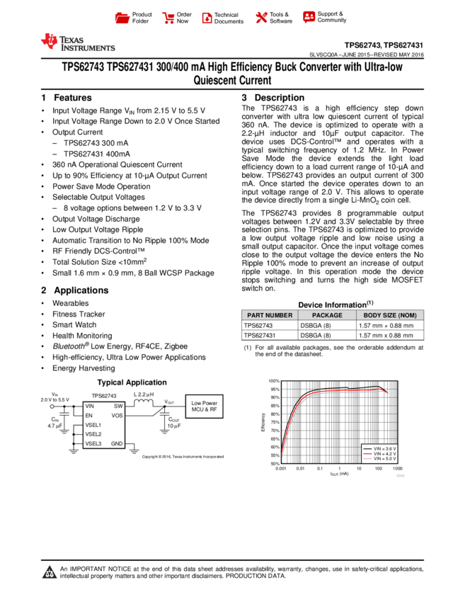 Conv DC-DC Single Step Down 2V 5.5V 8-Pin DSBGA T/R