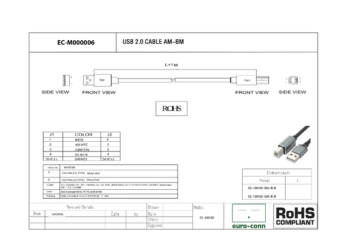Arduino USB 2.0 CABLE TYPE A/B 1M