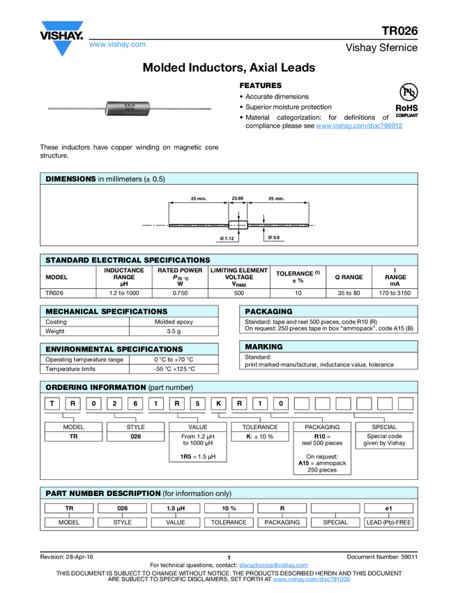 Ind High Frequency Molded 56uH 10% 2.5MHz 85Q-Factor 465mA AXL T/R