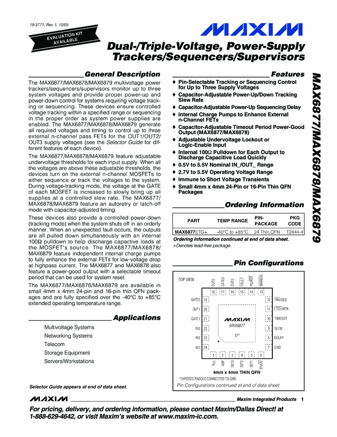 MAX6877, MAX6878, MAX6879 Dual-/Triple-Voltage, Power-Supply Trackers/Sequencers/Supervisors