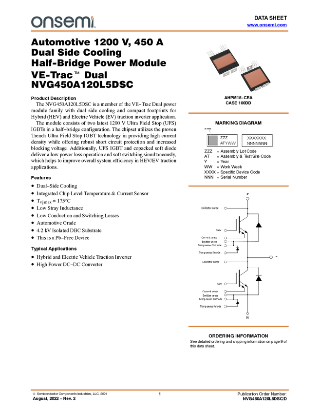 VE-Trac Dual - Automotive 1200 V, 450 A Dual Side Cooling Half-Bridge Power Module