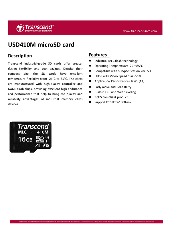 Transcend TS4GUSD410M microSD Przemysłowy 4 GB Class 10 UHS-I