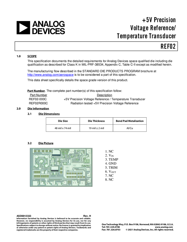 Aerospace +5V Precision Voltage Ref./Temp. Transducer