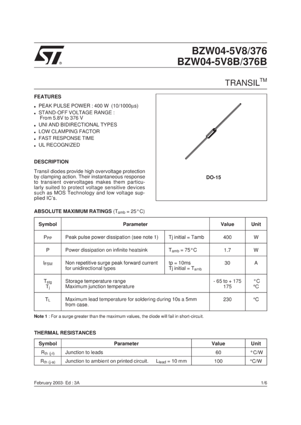 TRANSIL ARRAY FOR DATALINE PROTECTION