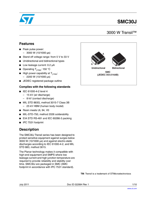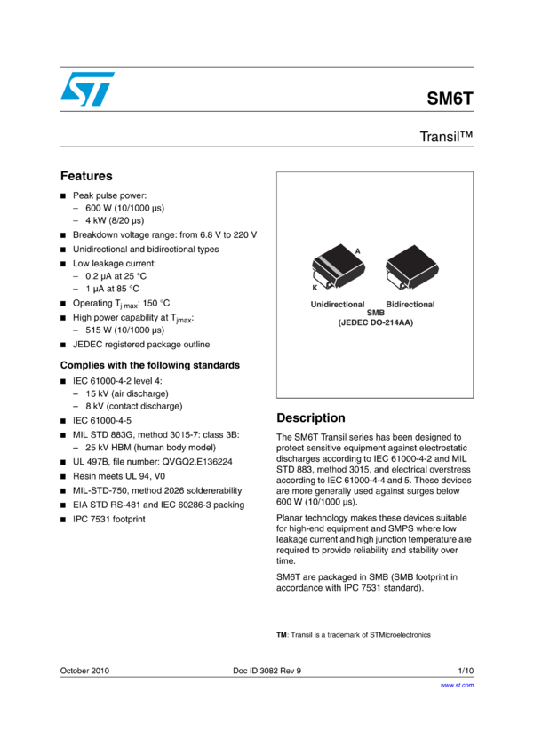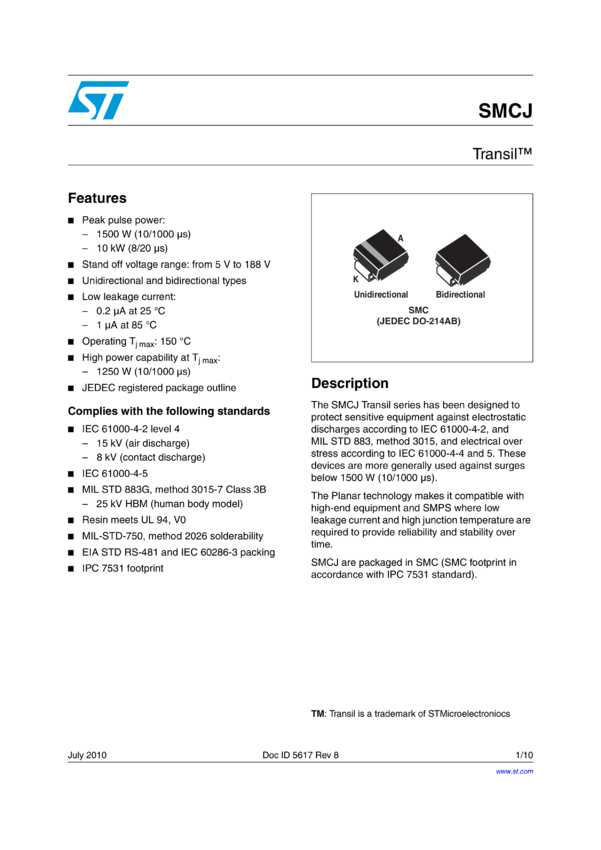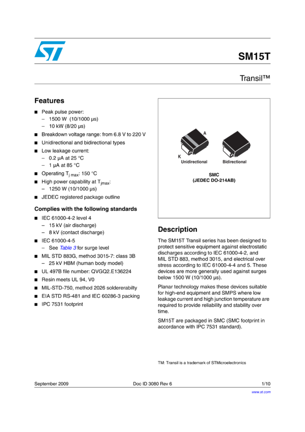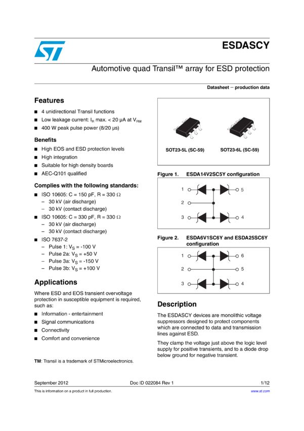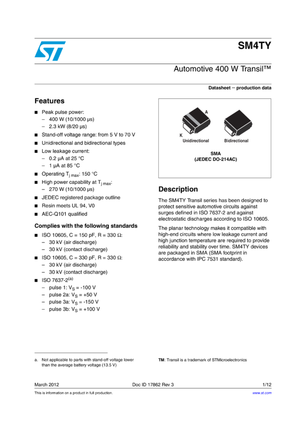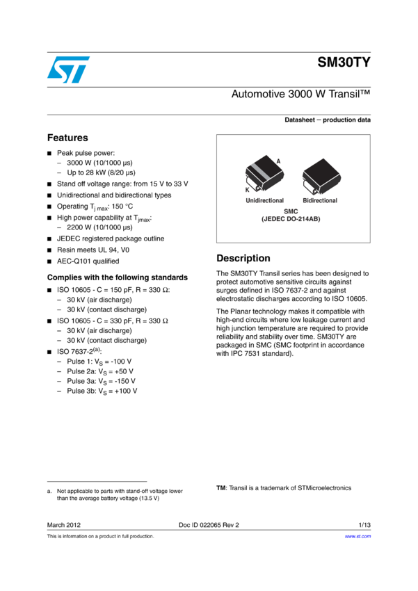 Automotive dual-line Transil™, transient surge voltage suppressor (TVS) for CAN bus