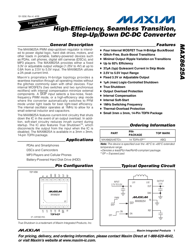 High-Efficiency, Seamless Transition, Step-Up/Down DC-DC Converter
