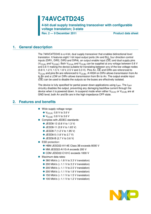4-bit dual supply translating transceiver with configurable voltage translation; 3-state