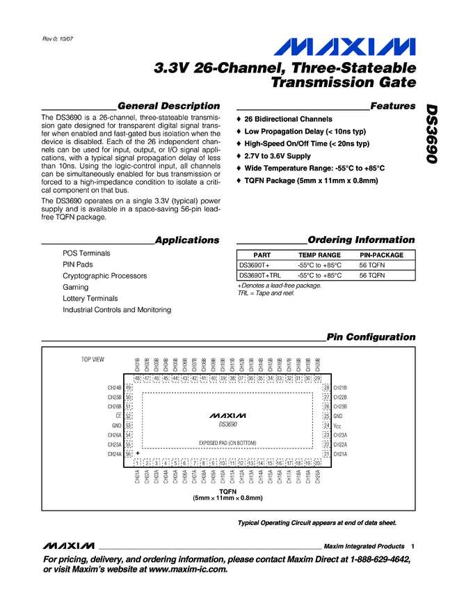 DS3690 3.3V 26-Channel, Three-Stateable Transmission Gate