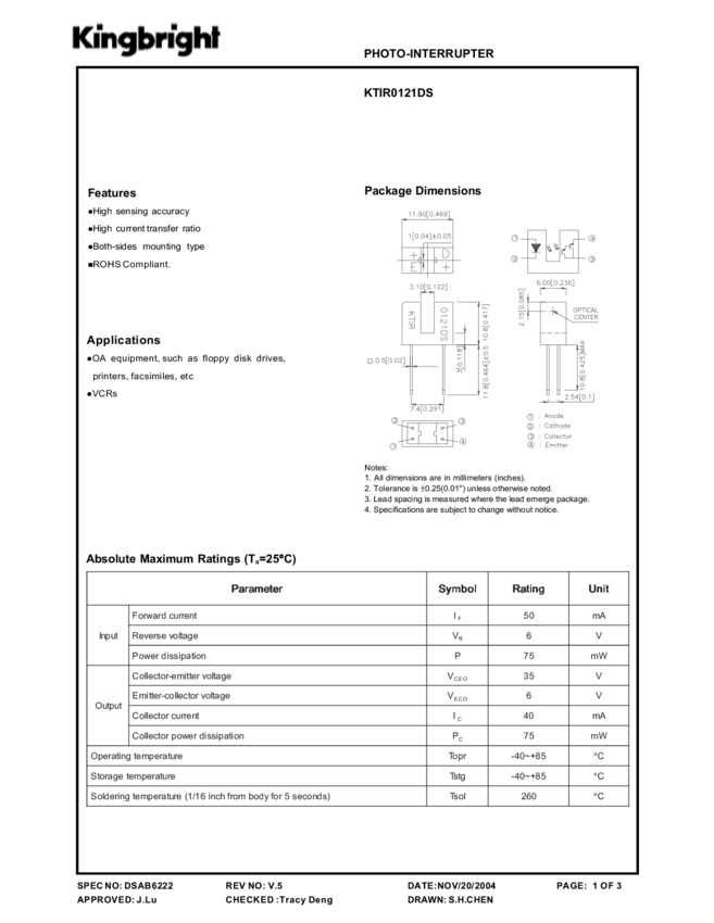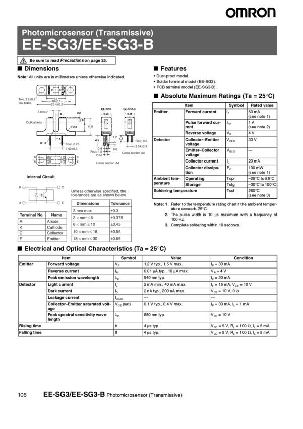 Photointerrupter Transmissive 5mm Photologic, Open Collector 3-Pin