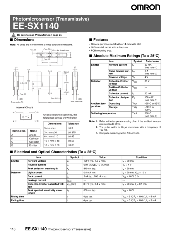 Photointerrupter Transmissive 14mm Phototransistor 4-Pin