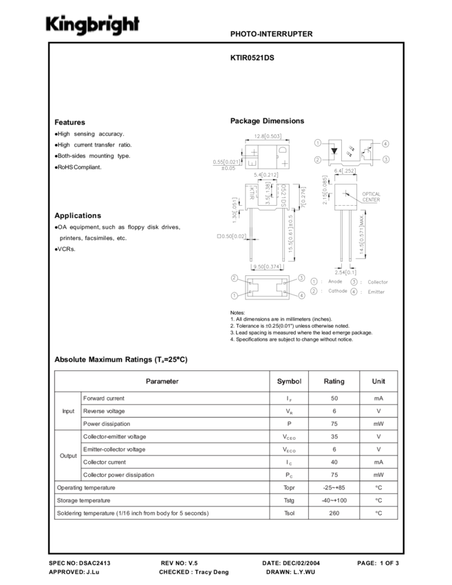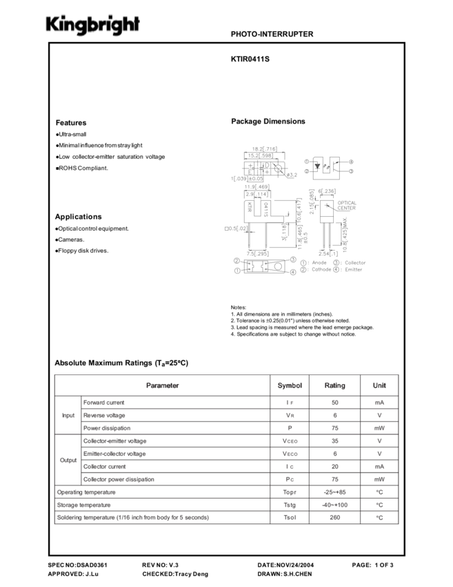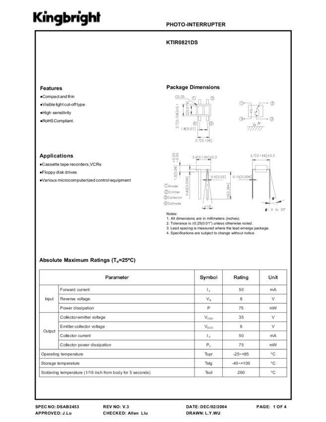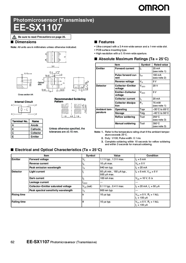 Photointerrupter Transmissive 3.4mm Phototransistor 4-Pin