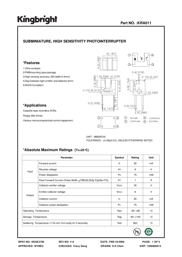 Photointerrupter Transmissive 1mm Phototransistor 4-Pin T/R