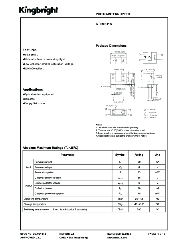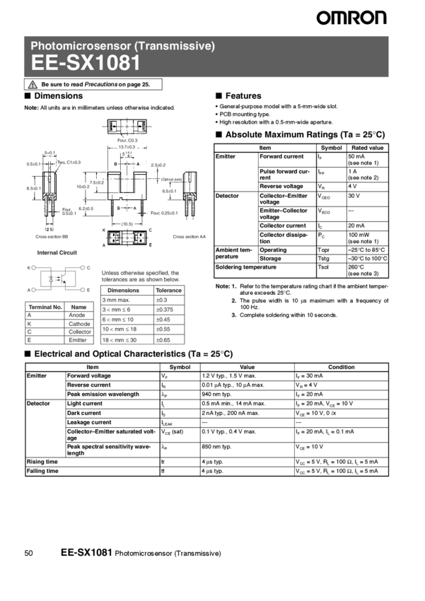Photointerrupter Transmissive 3.6mm Phototransistor 4-Pin