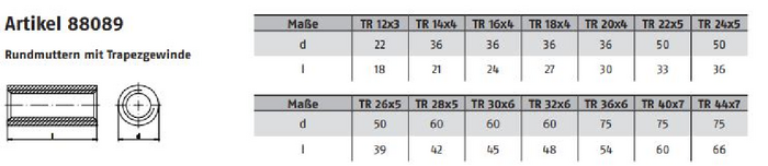 Nakrętki trapezowe okrągłe TOOLCRAFT 1069505 1 szt.